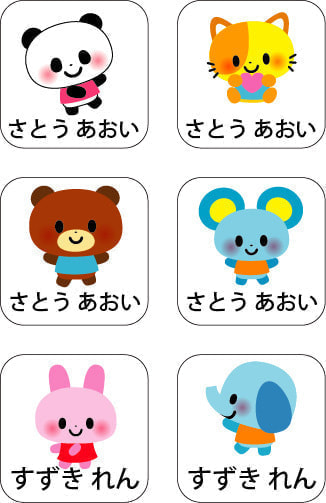 文字の読めない年少の園児さん向けには、かわいい動物イラスト付きの名前シールもあります。
