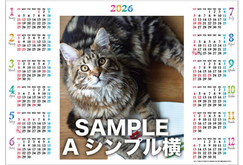 | 素材 | カレンダー本体:上質紙、ラミネートフィルム(PET) フック:(シール部分)ポリエステルシート、(フック部分)ポリプロピレン |